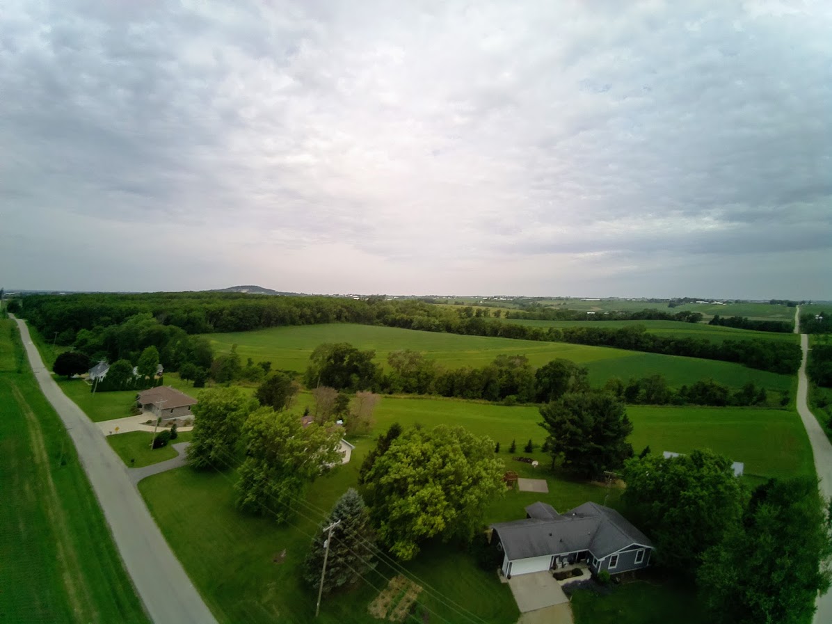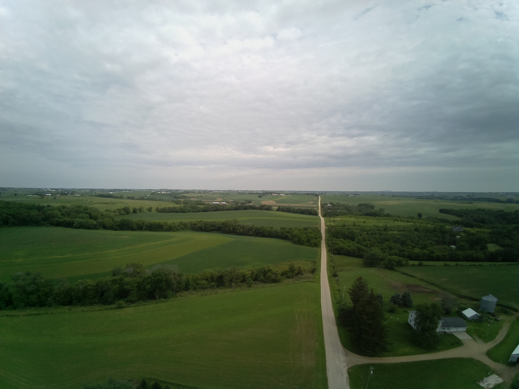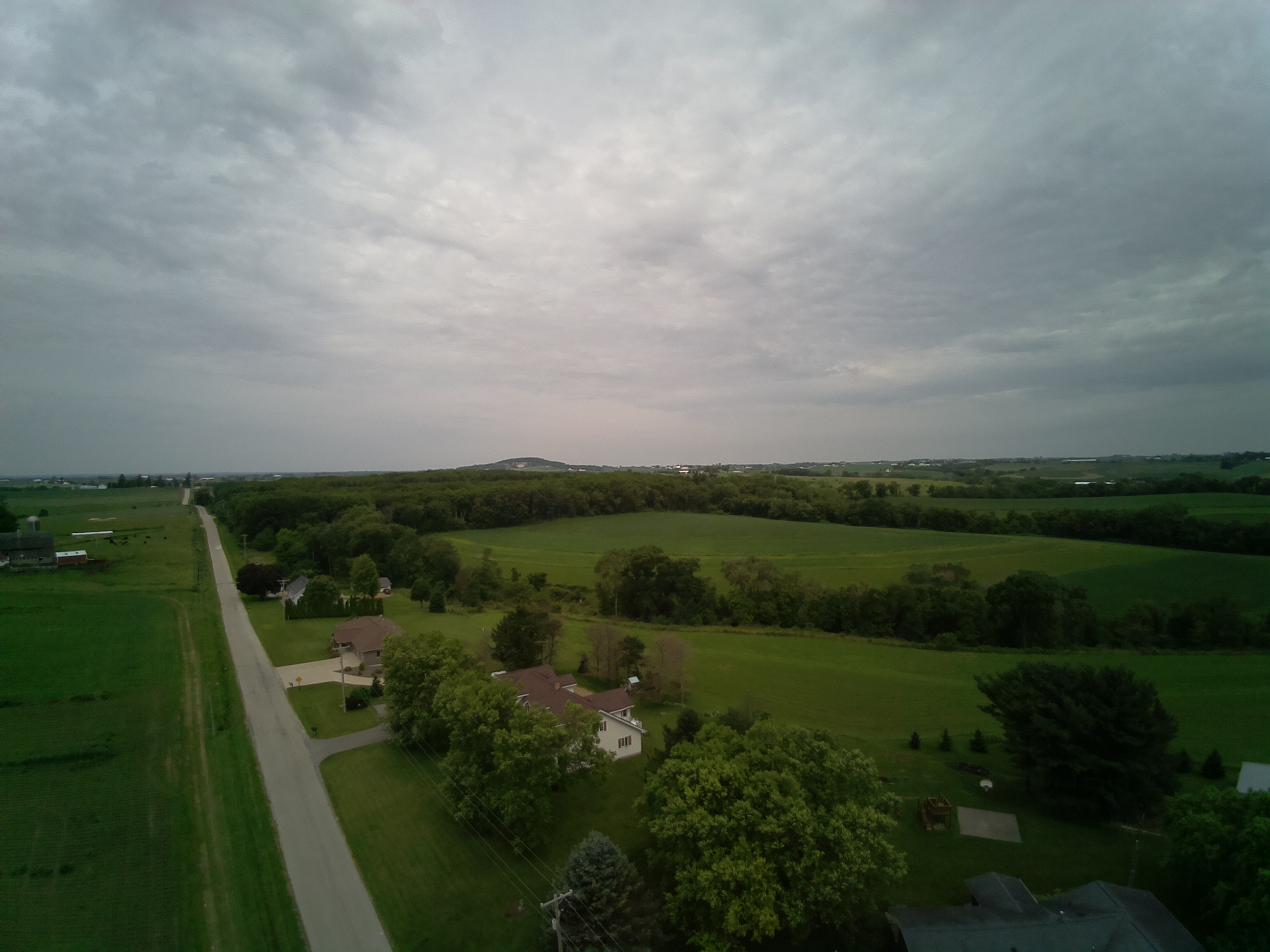 These photos were taken on June 30th, 2019. The wind was from the southeast so I was able to get a nice shot towards the Sinsinswa Mound. You can see the roads that lead off to the west and the north. It was around 1:00pm and the skys were cloudy so the lighint is very even. This was using the Raspberry Pi Zero W and the wide angle lens.